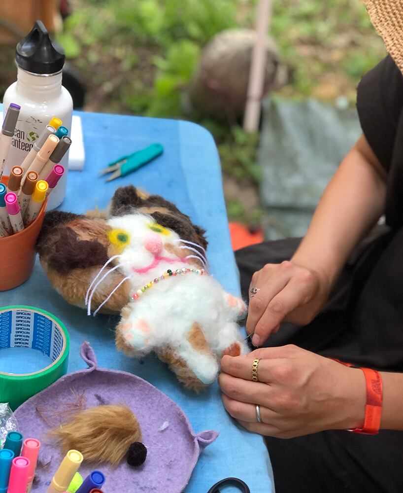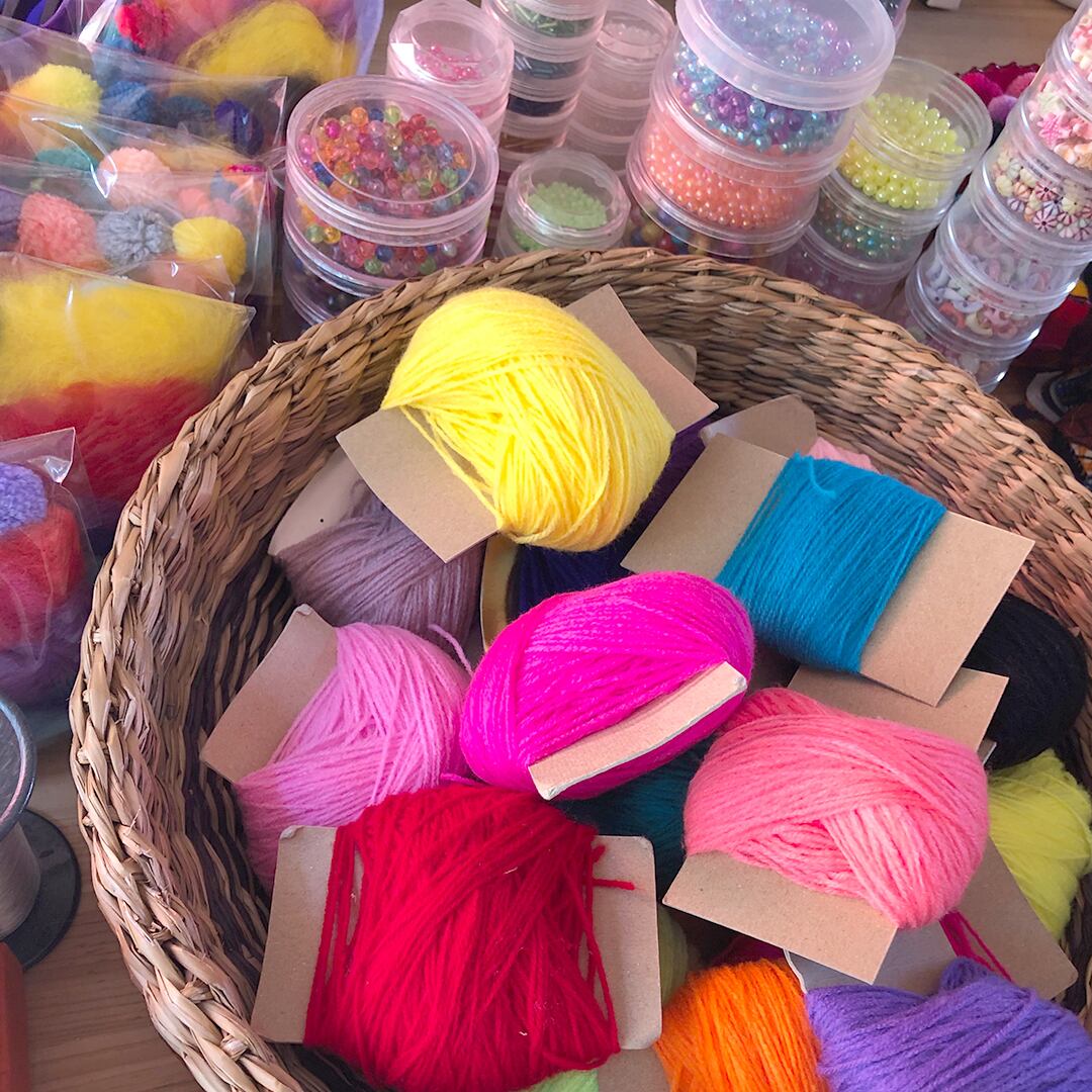 布用ペン、毛糸、刺繍糸、ビーズ、スパンコール、羊毛フェルト...などなど、店主が選んだちょっとめずらしくてかわいい材料を自由に使って、じぶんだけのオリジナルぬいぐるみを作リましょう!おうちから、捨てるに捨てられないハギレやボタン、リボン、拾ってきた木の実や小枝など材料を持参くださっても楽しいです!